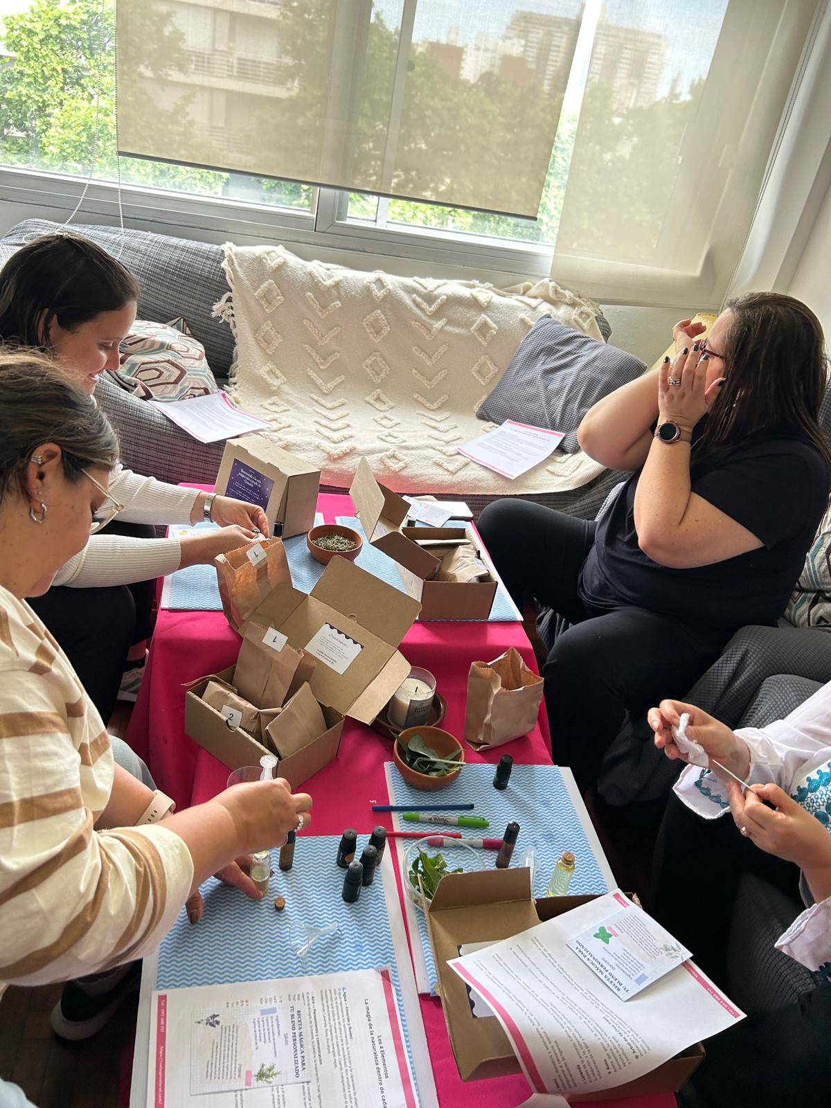 Durante la tarde, cada participante creó su propio blend de aceites esenciales, combinando distintos aromas para elaborar una mezcla personal.
