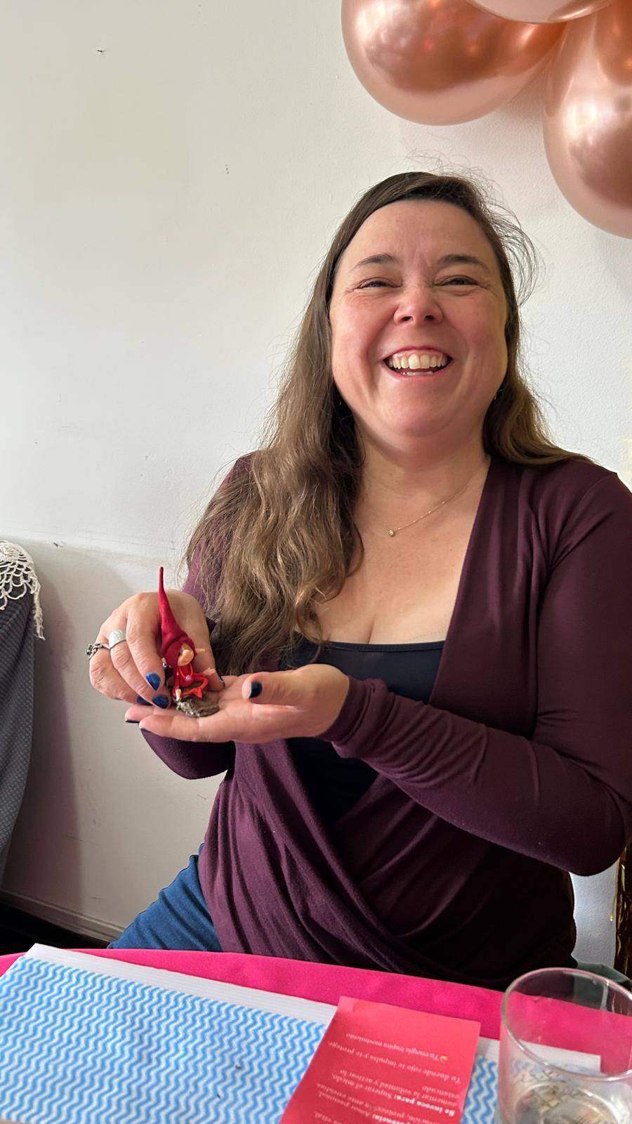 También apareció uno de los momentos más divertidos del encuentro: cada una recibió un duende de un color diferente, acompañado de su significado simbólico y su energía particular.