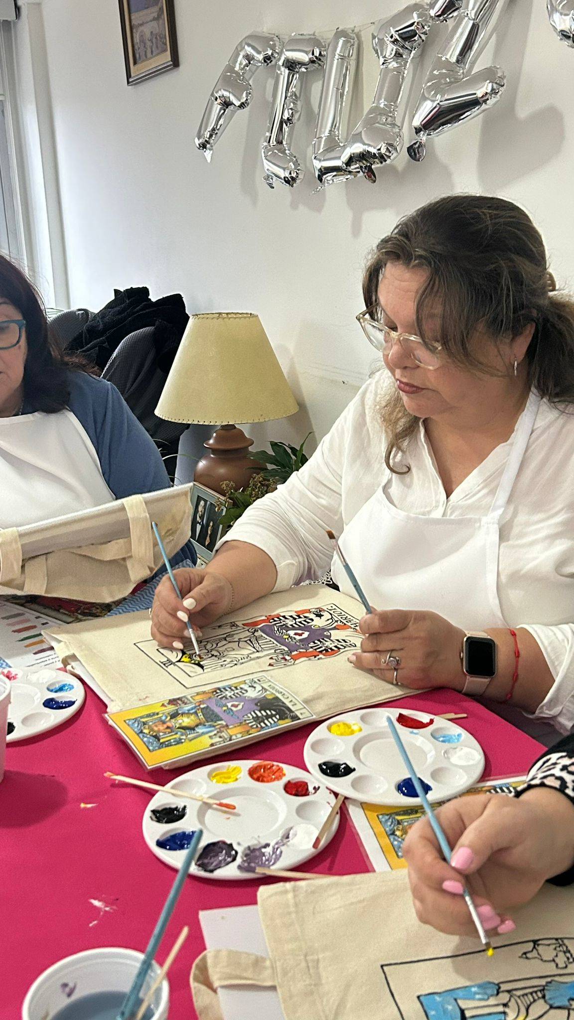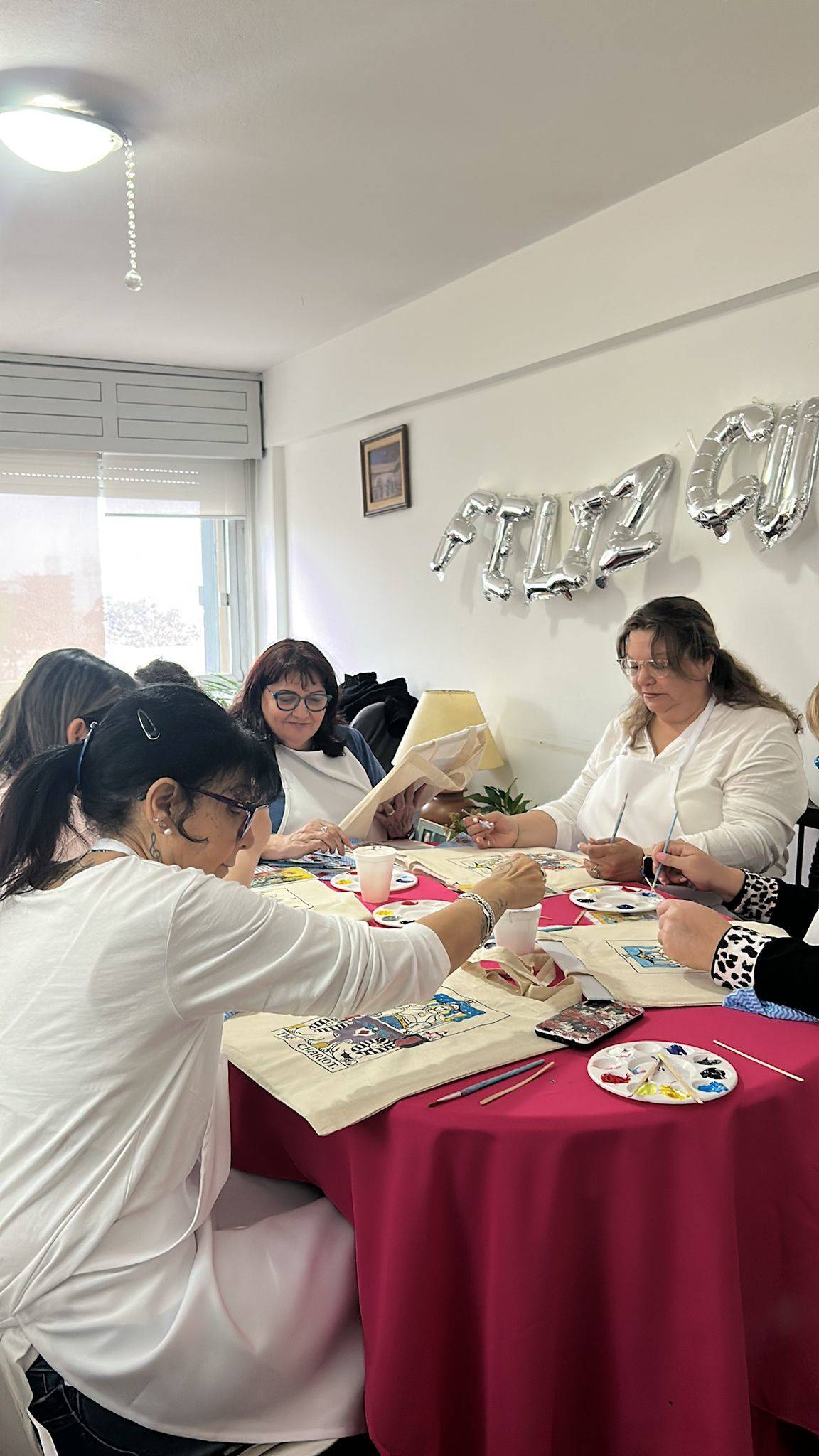 Como recuerdo de la experiencia, todas se llevaron una tote bag de algodón pintada a mano por ellas mismas, un objeto que no solo quedó hermoso, sino que también guarda la energía y la intención de la tarde compartida.